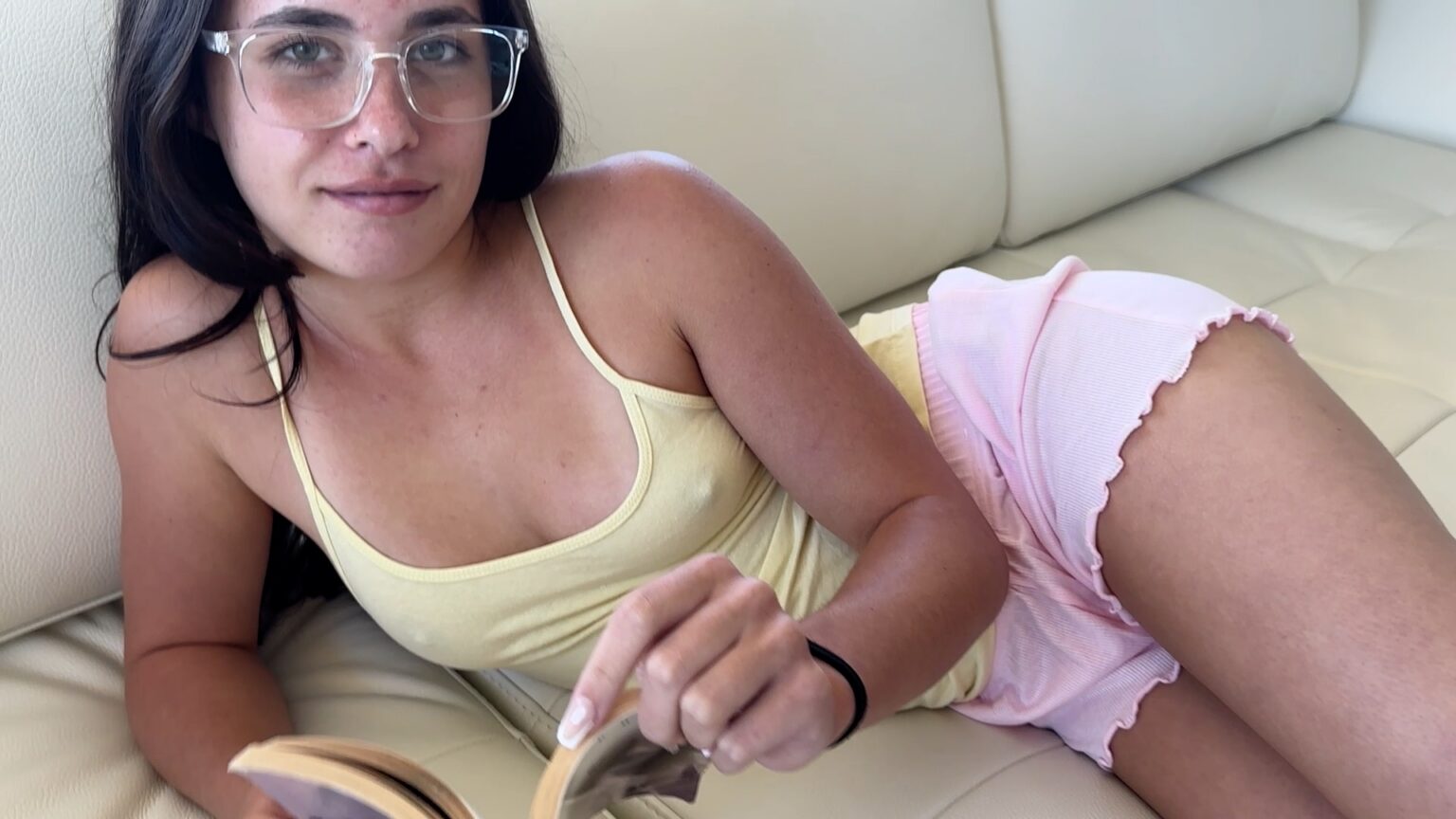 You catch your stepsister lost in the pages of a book, her fingers subtly teasing between her thighs as she reads.
